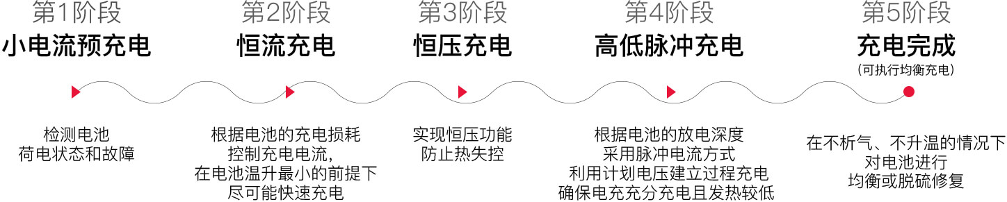 拥有充电曲线技术专利,五阶段智能充电,快速高效稳定